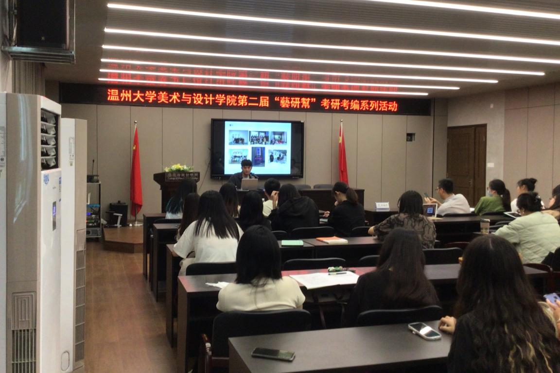 首先,由黎勤斌学长分享他的“十年美院学习经历分享”。黎学长刚开始就读于中国美院附中,后考上中国美院油画系再到保研中国美术学院,他主要分享了自己在美院就读的一些深刻体会以及学习上与其他学校的不同之处。通过学长的分享让我们更全面的了解到中国美术学院,为考研的学生们指引了方向。