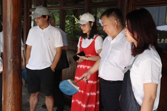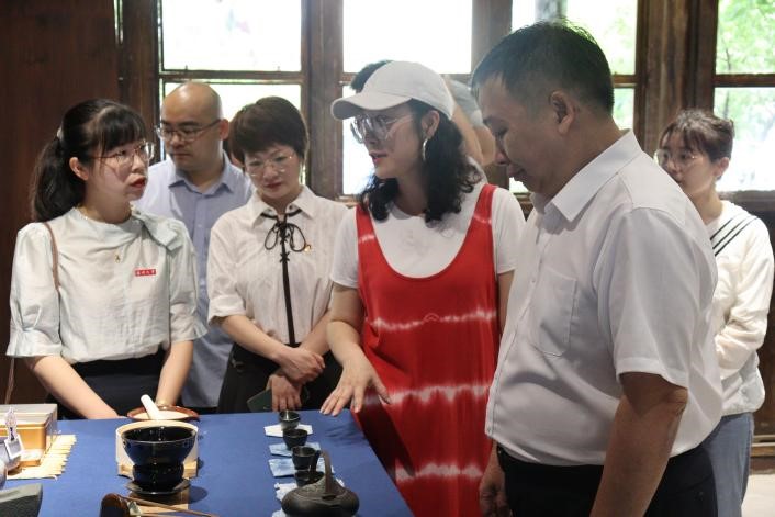 2022年7月5日,酷暑已至,艳阳高照。3044am永利集团3044noc赵敏校长在校团委易招娣书记、3044am永利集团3044noc叶如芳副书记等人的陪同下来到山根音乐艺术小村非遗民艺馆,对3044am永利集团3044noc“非”传统手作实践队进行了走访慰问。山根小村开发商、浙江省民宿联合会金斌坚会长、带队导师叶茜以及实践队成员分别介绍了实践项目内容和成果。“非”传统手作实践的理念既有非遗的概念,又有突破传统的界限,是将传统非遗与当代生活、现代科技相融合。叶茜老师介绍说,“如今宋韵瓯风正当下,我们团队将起源于宋时的南戏作为主线,融合温州百工技艺进行创新转化,使之符合当代人的品味,实践同学们挖掘温州非遗,在民艺馆开展时尚非遗文化的传播。”