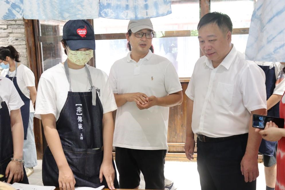 2022年7月5日,酷暑已至,艳阳高照。3044am永利集团3044noc赵敏校长在校团委易招娣书记、3044am永利集团3044noc叶如芳副书记等人的陪同下来到山根音乐艺术小村非遗民艺馆,对3044am永利集团3044noc“非”传统手作实践队进行了走访慰问。山根小村开发商、浙江省民宿联合会金斌坚会长、带队导师叶茜以及实践队成员分别介绍了实践项目内容和成果。“非”传统手作实践的理念既有非遗的概念,又有突破传统的界限,是将传统非遗与当代生活、现代科技相融合。叶茜老师介绍说,“如今宋韵瓯风正当下,我们团队将起源于宋时的南戏作为主线,融合温州百工技艺进行创新转化,使之符合当代人的品味,实践同学们挖掘温州非遗,在民艺馆开展时尚非遗文化的传播。” 赵敏校长先后参观了几个体验区域并仔细聆听了学生的介绍与实践心得。期间,学生展示了南戏研学项目、戏曲IP热转印和蓝染产品与宋式点茶的结合形式以及相关文创产品。赵敏校长对于南戏与蓝夹缬同现代生活用品结合、蓝夹缬的再应用与灰染的结合、纯天然无污染的传统染色技艺表示了肯定,还亲自上手体验了一把蓝染的乐趣。 山根音乐艺术小村已和温大建立双创基地,自去年“非”传统工坊空降以来,激活了整个非遗民艺馆。每次活动开展得如火如荼,深受喜爱,游客及体验者纷纷慕名而来,也有效地带动了山根音乐艺术小村的人流量,助力了乡村文化的发展。 此次慰问,赵敏校长充分了解“非”传统手作实践队在山根开展的实践内容,认真听取了实践同学的情况汇报,对实践队的开展给予细心的指导,赵敏校长也希望同学们,在安全的前提下,多思考多践行,更多地将自己课堂上所学的专业知识转化为服务社会的力量,不断在实践中受教育,长才干,做贡献。