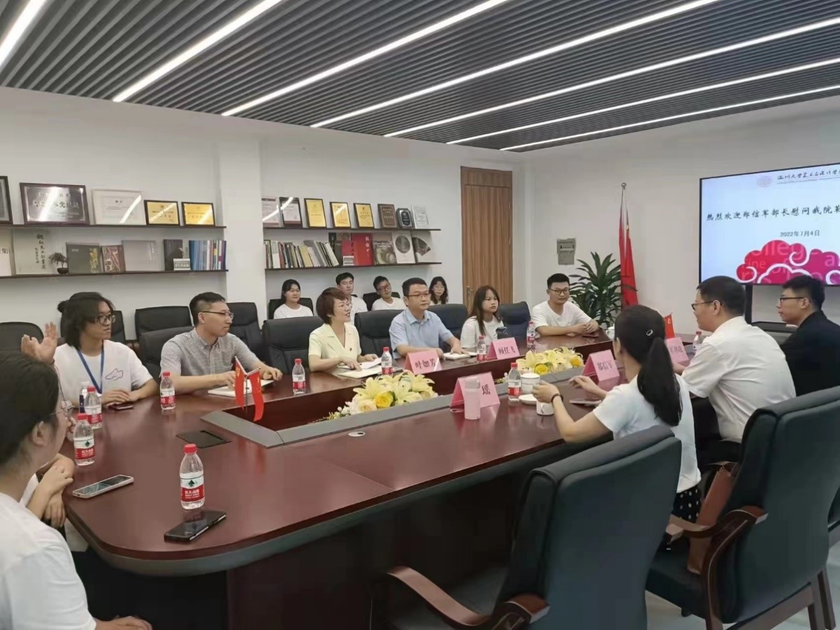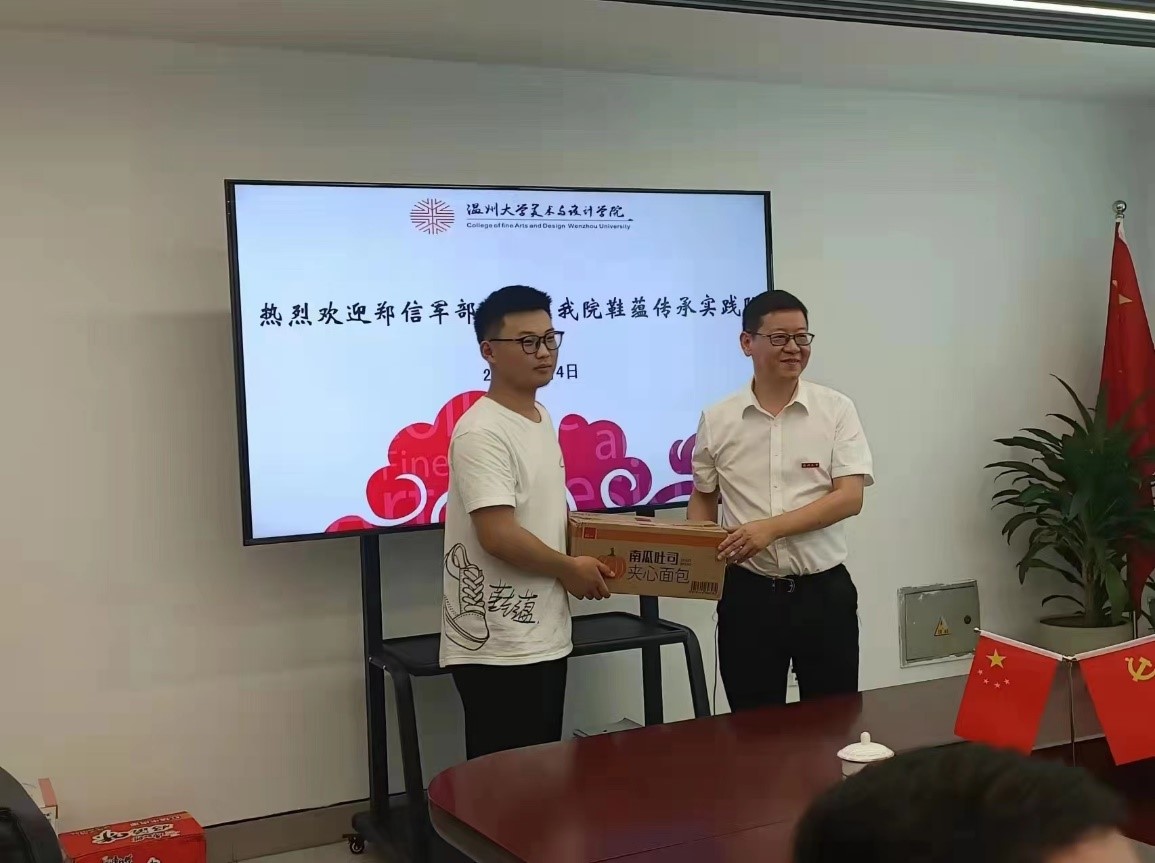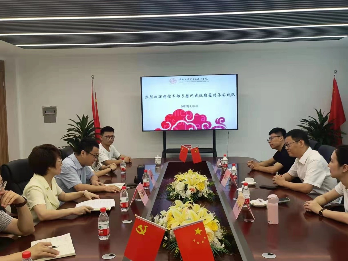 7月4日,校党委委员、组织部部长郑信军一行人来到3044am永利集团3044noc看望慰问“鞋蕴传承”暑期社会实践队。在座谈会上,学院党委副书记叶如芳主持,鞋蕴传承实践队队长田锦源介绍了实践情况,展示了实践三天以来队员们实践进度与成效,并介绍了未来几天实践队的计划与目标,慰问中,郑信军部长还向实践队同学们赠送了慰问品,为实践队送来夏日里的温暖关怀。