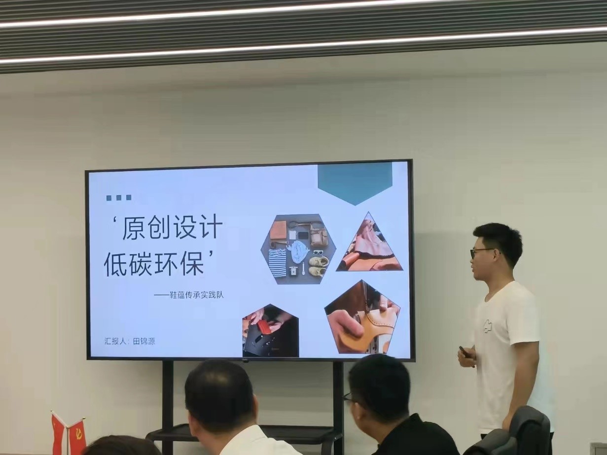 其后,“鞋蕴传承”实践队的指导老师顾任飞副院长具体介绍了实践队13年的发展情况。“鞋蕴传承”实践队成立之初每年围绕一个主题实践,从金融危机时"设计研发的提升"、"传统鞋文化与设计"、"智能制造"、"品质革命"、"新零售"、"大国工匠"到"绿色时尚"。今年,实践队员们通过前期调研,确定了以“原创设计,低碳时尚”为主题,以帮助企业树立环保绿色意识。鞋蕴传承实践队在近几年实践当中也获得了各种荣誉,同时实践队要坚持开拓创新,与时俱进跟紧时代潮流,励志将温州鞋文化传承下去,为将温州“中国鞋都”打造成为“世界鞋都”努力。