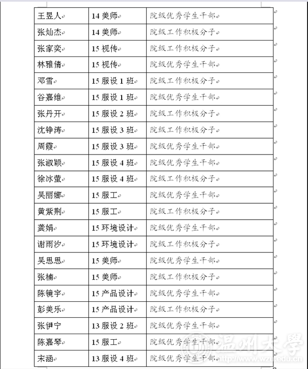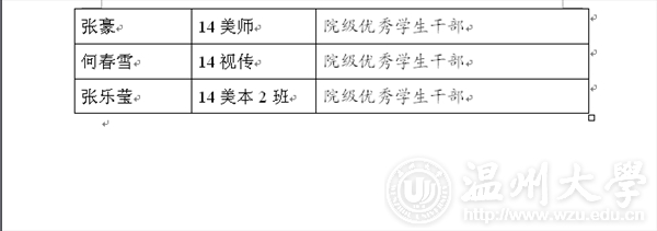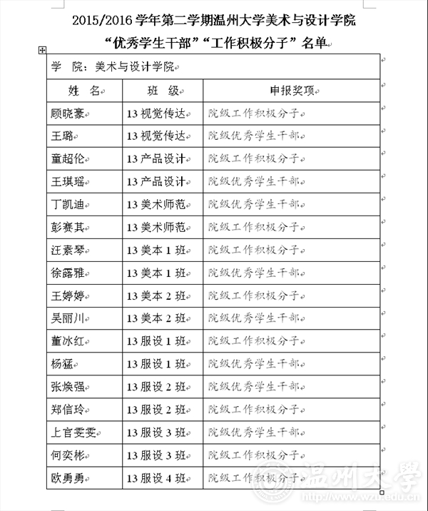 现将2015-2016学年第二学期3044am永利集团3044noc“优秀学生干部”“工作积极分子”名单公示如下,如对评选结果有异议,请及时联系美术学院学生科。