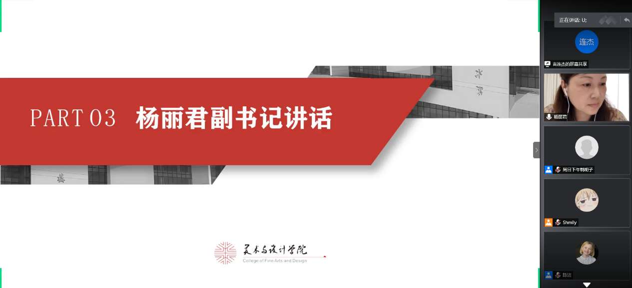 在评比之后,杨丽君老师对同学们的展示做了精彩的点评。杨书记既肯定了永利集团官网学子优良学风以及在疫情期间的学习成果,同时也细心点评了参赛选手的不足,鼓励美院学子再接再厉,丰富五班十星各个项目全面发展。
