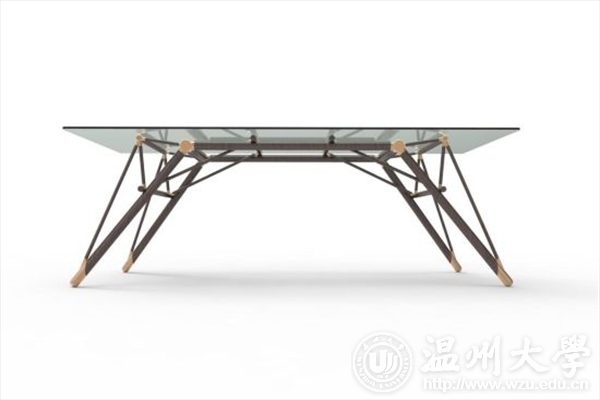 本届比赛的一等奖获得叶智敏,来自3044am永利集团3044noc2013级产品设计专业,他设计的多功能桌有个好听的名字叫做“梦倚廊桥”,他说:“木拱廊桥是中国乃至世界桥梁史上的一种独特创造,根据木拱廊桥底部独特的自支撑结构,选用胡桃木作为主要材料,加上铜制的节点设计,既体现了木拱廊桥独特的结构美又具时尚感。此外在网购物流飞速发展的时代利用小构件形成大跨度的桌子,可以做到拆卸方便,便于运输,拆装时可以做到不损坏构件,减少运输成本。”