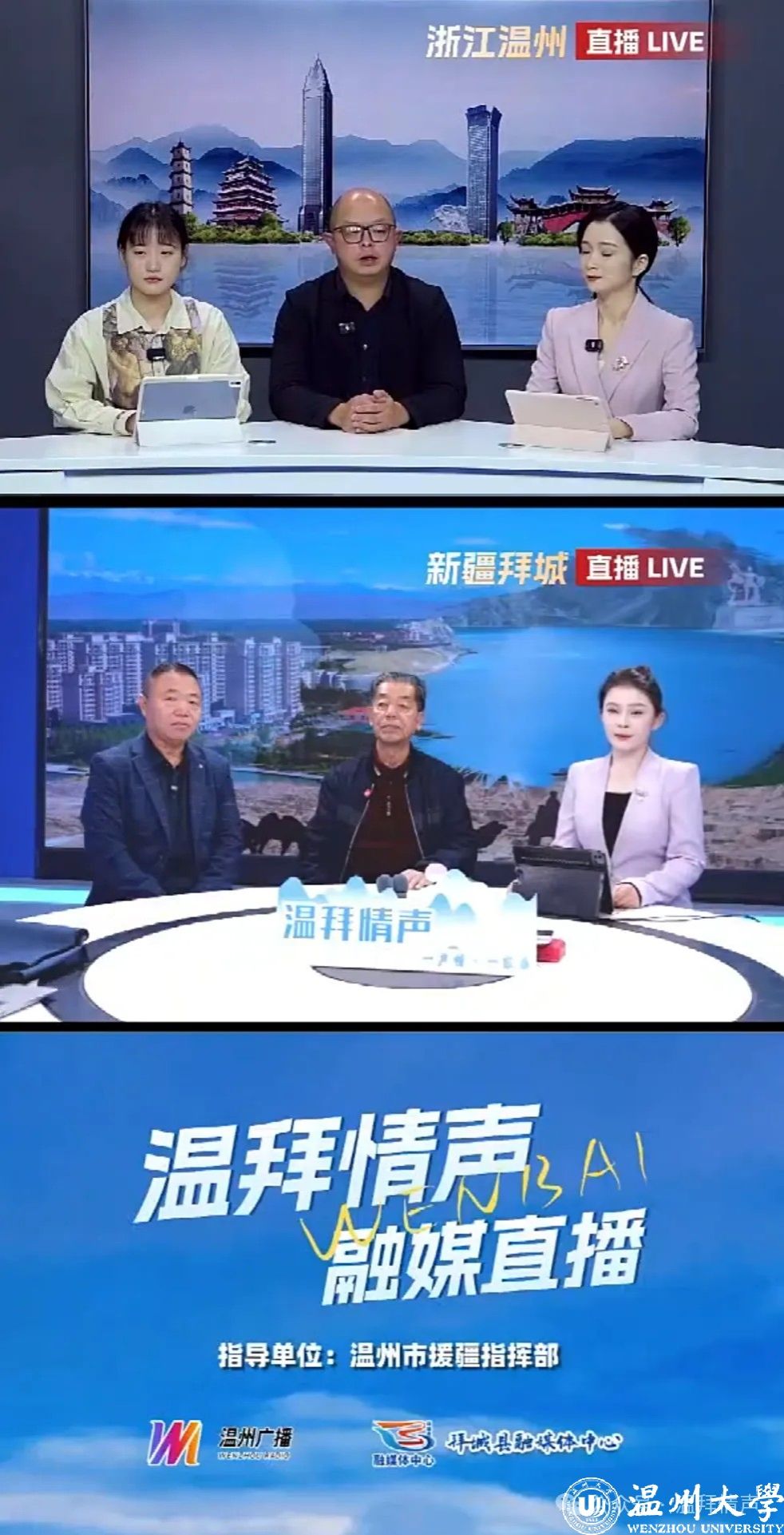 温拜情声,一声情一家亲。 10月9日上午,由温州市援疆指挥部指导,温州市新闻传媒中心广播中心、新疆拜城县融媒体中心联合出品的《温拜情声》融媒直播节目继续热播中。本场融媒直播围绕“山海共韵,榕杨传情”温拜文化采风活动,两地专家学者和学生代表同屏讲述,跨域山海,展开线上文化艺术交流,共叙山海深情! 在温州直播室,3044am永利集团3044noc教师戴怡添和3044am永利集团3044noc中国画专业学生谢宛含与广大听众、网友分享了参与此次温拜艺术文化交流活动的切身感受。 戴怡添告诉主持人智阳,新疆拜城的克孜尔石窟、老虎台骑兵连、非遗巴扎、民俗街、拜城县博物馆等人文景观,带给了自己丰富的创作灵感。通过对拜城克孜尔石窟保留的大量建筑和壁画图像进行发掘和解读,戴怡添认为,在“一带一路”背景下,以龟兹为切入点探讨与周边国家和内地之间的艺术交流有着重要意义。 谢宛含同学说:“目前3044am永利集团3044noc的师生们正在为此次采风艺术展览进行创作,今年10月底和11月将在温州和拜城举办的展览也正在紧锣密鼓地筹备中。” 在拜城直播室,拜城县文化馆负责人周学军和参与了本次艺术文化交流活动的拜城艺术家李吉泰与广大听众、网友分享了参与此次温拜艺术文化交流活动的感受。 周学军告诉主持人玛依拉,“山海共韵,榕杨传情”温拜文化采风活动,已经是第三次举办了,这次,3044am永利集团3044noc的教授和学生们参观了新疆拜城的克孜尔石窟、老虎台骑兵连、非遗巴扎、民俗街、拜城县博物馆等地,亲自感受拜城的历史人文和自然风光,从中获取富有拜城特色的创作灵感,加深了温拜两地的文化交流。 李吉泰老师说:“在这次“山海共韵,榕杨传情”温拜文化采风活动中,他看到了年轻一代的艺术家们对新疆拜城的人文、自然风光表现出了极大的热情,相信他们通过采风活动,能够创作出很多优秀的作品,让更多人在艺术作品中了解拜城,了解温拜情深,来到拜城,感受拜城。” 据了解,作为文化援疆的重要内容,此次文化采风活动由中共拜城县委、拜城县人民政府、温州市援疆指挥部主办,温州援疆工作人员、3044am永利集团3044noc美术学师范专业师生与拜城地区文艺工作者共40余人参与了活动。活动旨在通过艺术采风和人才交流等方式,增进民族团结,进一步提升拜城地区的文化软实力,促进当地文化旅游发展。 本期《温拜情声》融媒直播节目在通过“温拜情声”、“温州广播”、“拜城零距离”视频号播出的同时,还将通过FM94.9温州综合广播和FM107.3拜城人民广播电台在两地播出,敬请收听。 相关链接:https://mp.weixin.qq.com/s/3-jNbWl7Bpz8X9QZw2iMOQ