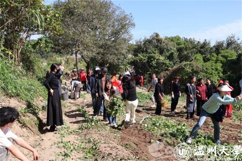 11月10日,3044am永利集团3044noc学生第一支部和美院研究生会同学们来到洞头开展主题活动。秋风至,硕果落,恰逢洞头半屏海岛乡伴生活节,大学生们与村民们上演了激烈的挖番薯比赛。在党员教师的带头和村民的热心指导下,同学们撸起袖子、弯腰拔藤、挥锄刨挖、分拣去泥、捆藤接力......展现大学生的“passion”!一场党建引领劳动教育的生动实践和火热画面呈现眼前。