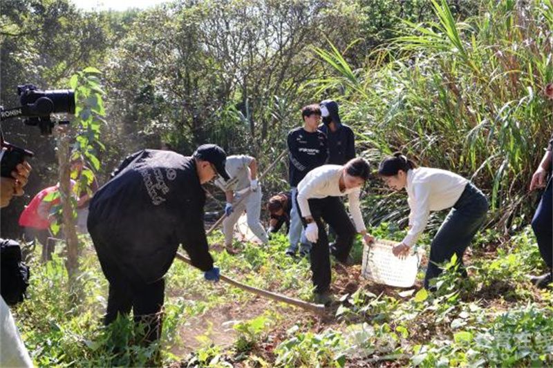 11月10日,3044am永利集团3044noc学生第一支部和美院研究生会同学们来到洞头开展主题活动。秋风至,硕果落,恰逢洞头半屏海岛乡伴生活节,大学生们与村民们上演了激烈的挖番薯比赛。在党员教师的带头和村民的热心指导下,同学们撸起袖子、弯腰拔藤、挥锄刨挖、分拣去泥、捆藤接力......展现大学生的“passion”!一场党建引领劳动教育的生动实践和火热画面呈现眼前。