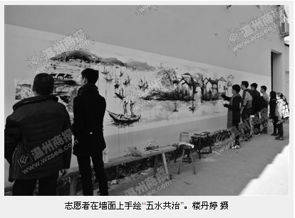 商报讯(通讯员 楼丹婷)前天,3044am永利集团3044noc“艺家人”青年志愿者协会走进瓯海潘桥街道东边村,开展了一场“五水共治”手绘文化活动。80多名志愿者在东边村600余米的粉刷墙面上作画,形象展示了“五水共治”的宣传信息。