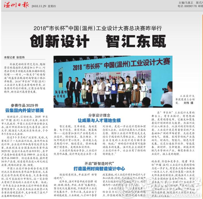 温州日报:2018“市长杯”中国(温州)工业设计大赛总决赛昨举行