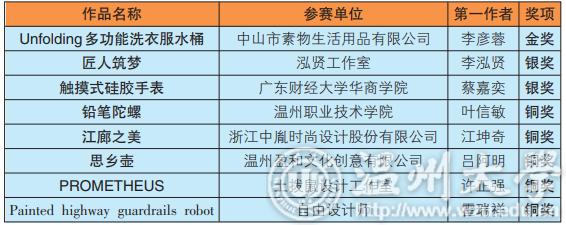 中国工业设计协会副会长赵卫国对此次参赛的优秀作品印象深刻,尤其是这些作品既有时尚感,又具备功能性,还可直接进行市场化,这一突出特点有别于其他的工业设计大赛。他说:“温州民营企业对工业设计相当重视,今年来自企业和独立设计师的参赛数量明显增多,尤其是本地企业数量以及参赛热情明显提升,充分体现了温州产业集群鲜明的特点。”