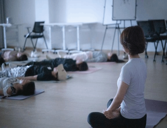 最后一个环节正念冥想。同学们平躺在瑜伽垫上,在林老师舒缓的引导语中,进入了深度的放松状态。大家仿佛置身于一个宁静的空间,抛开了外界的喧嚣和烦恼,只专注于自己的内心世界。冥想结束后,同学们缓缓睁开眼睛,脸上都带着平和的神情,纷纷表示自己的身心都得到了极大的放松。