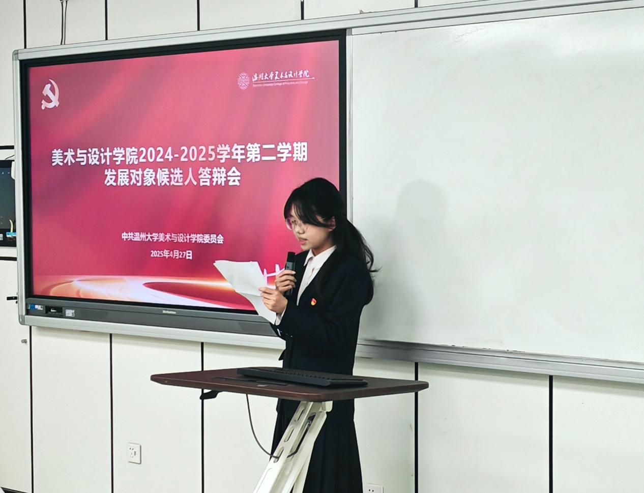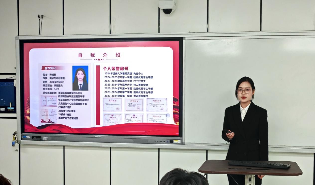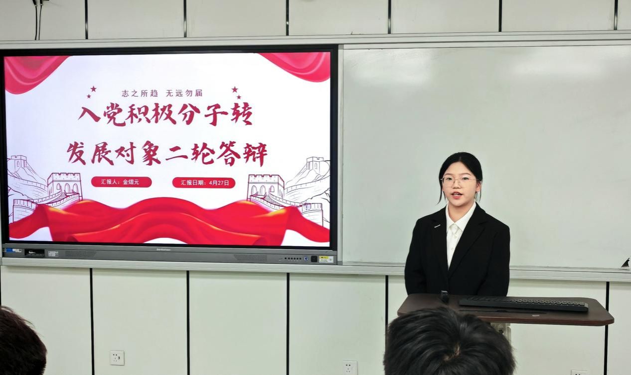 为扎实推进学生党支部建设,提高学生党员素质和服务意识,严格把控党员发展关口,吸纳理论知识储备丰富、党性修养良好的同学向党组织靠拢。2025年4月27日下午,3044am永利集团3044noc“学生党支部发展对象候选人答辩会”于美术楼2B3001教室顺利举行。出席此次答辩会的有学院学工办科长杨永利老师、党建指导老师陈嘉怡老师、辅导员石建林老师、刘伟金老师以及全体学生党员。会议开始,主持人叶欣雨同志宣布本次答辩会的议程和相关要求。本次答辩共有30位发展对象候选人。候选人依次通过PPT进行个人陈述,主要汇报入党动机、学习工作、志愿服务等方面情况以及自身存在的不足与未来展望等。评审通过对发展对象候选人的党章理论知识考核成绩、量化考核和现场答辩汇报等方面进行全方位考察。学院党建指导老师陈嘉怡对本次答辩会作了总结。陈老师希望各位学生党员时刻铭记自己的初心使命,秉持着“成熟一个,发展一个”的原则,认真对待每一个发展对象。并强调这不仅是对候选人负责,更是对党组织纯洁性和先进性的有力保障,确保为党输送德才兼备的新生力量。会后,集中观看《永远吹冲锋号》第三集《铁规矩硬杠杠》纪录片。陈嘉怡老师领学《3044am永利集团3044noc党员先锋引领“十要”》文件精神,深入解读了党员带头作用、骨干作用和桥梁作用的深刻内涵与重要意义。她指出,学生党员要敢于担当作为、勇于攻坚克难,积极践行“十要”准则,认真落实“五个带头”优良作风,以担当尽责的实际行动践行初心使命,争做温大先锋。本次拟发展对象答辩会,是新时代党的组织路线在基层党组织中的生动实践。这一举措为党员发展工作提供了规范化、制度化的流程。会后的中央八项规定精神学习与“党员先锋引领十要”准则的学习更是强化了学生党员的党性修养。希望各位学生党员能坚定信念,化正确思想为实际行动;同时希望各位拟发展对象能始终以一名共产党员的标准严格要求自己,积极向党组织靠拢,争取早日加入中国共产党!图文:沈吟珊 周心妍初审:何唐蔚复审:陈嘉怡终审:刘青松 叶如芳